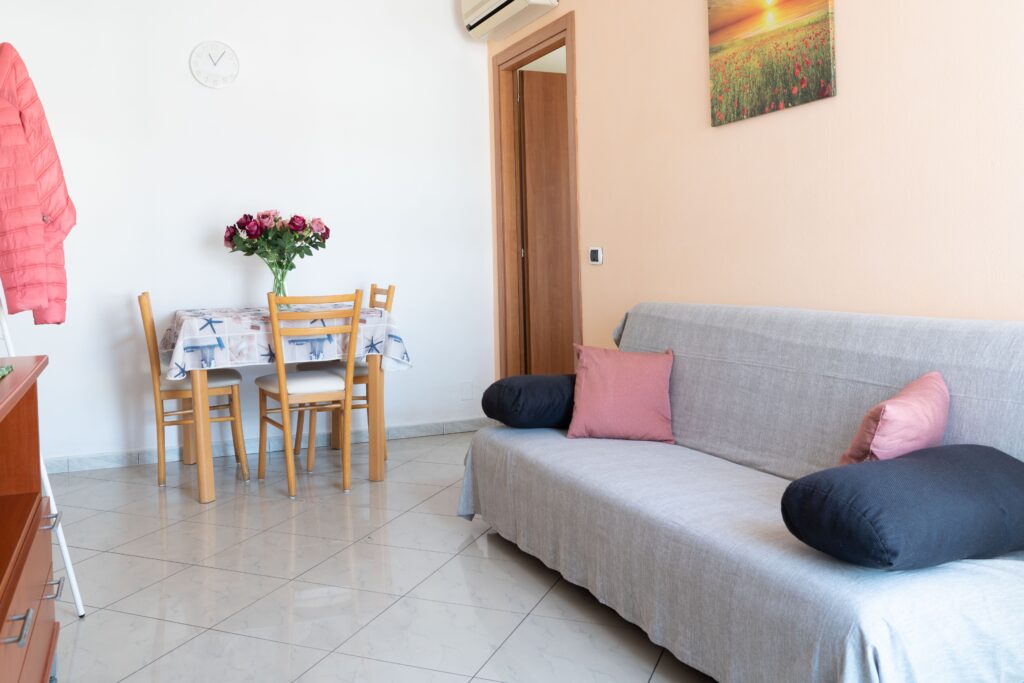 Luminoso bilocale al 2′ piano con ascensore, senza terrazzo e senza lavatrice ( a disposizione dei nostri ospiti, al piano terra, troverete lavatrice ed asciugatrice a gettoni con spazio per stendere la vostra biancheria)