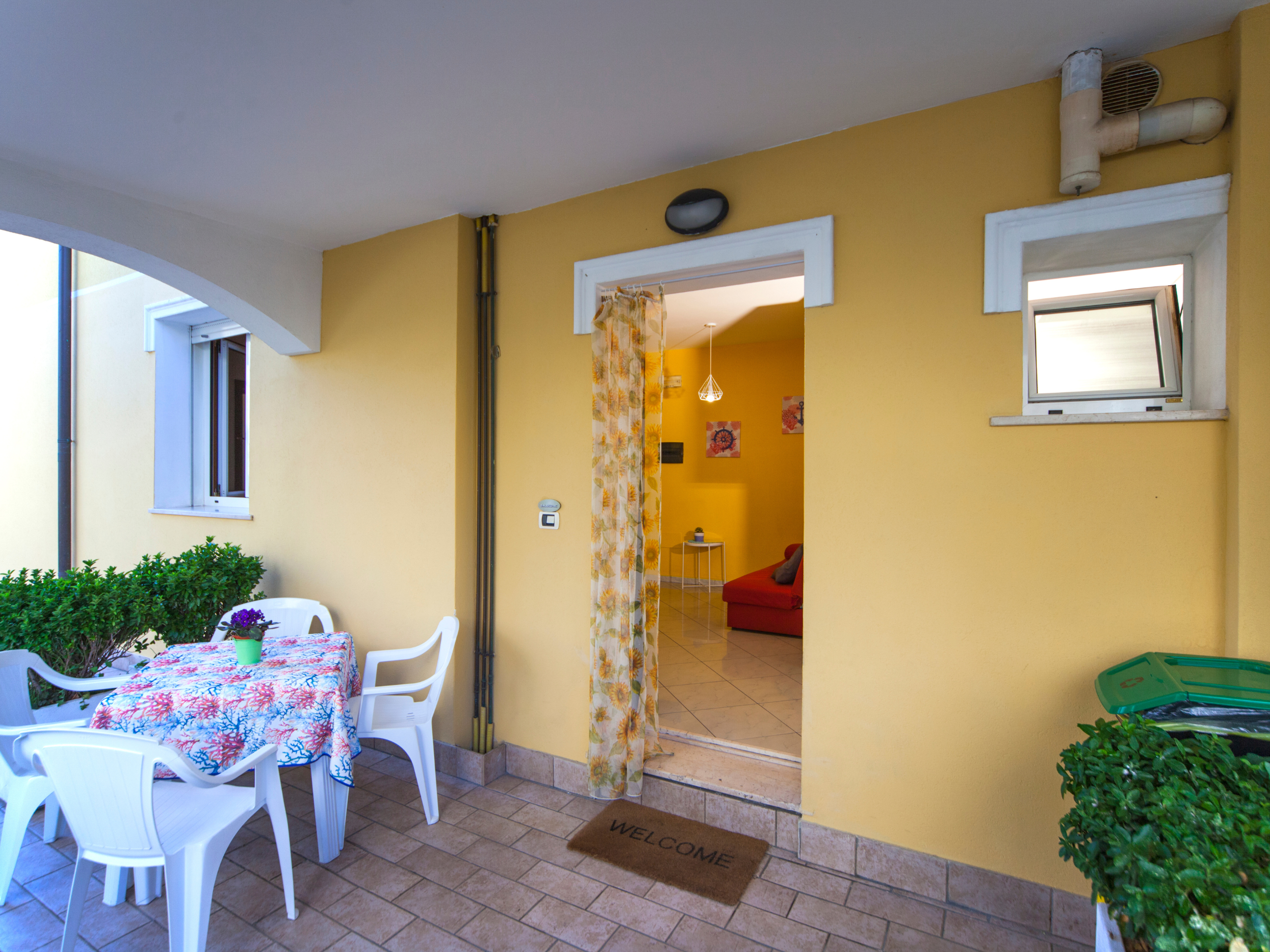 Appartamento bilocale, situato al piano terra con ingresso indipendente e spazio esterno riservato, ideale per le vostre cene o per i vostri amici a 4 zampe. Nell’ appartamento è disponibile un salotto con Smart TV, divano letto da una piazza e mezzo ed angolo cottura, fornito di tutto l’occorrente (microonde, macchina espresso, forno, stoviglie). Nella zona notte, troviamo camera matrimoniale, con stanza guardaroba, lavatrice e bagno.